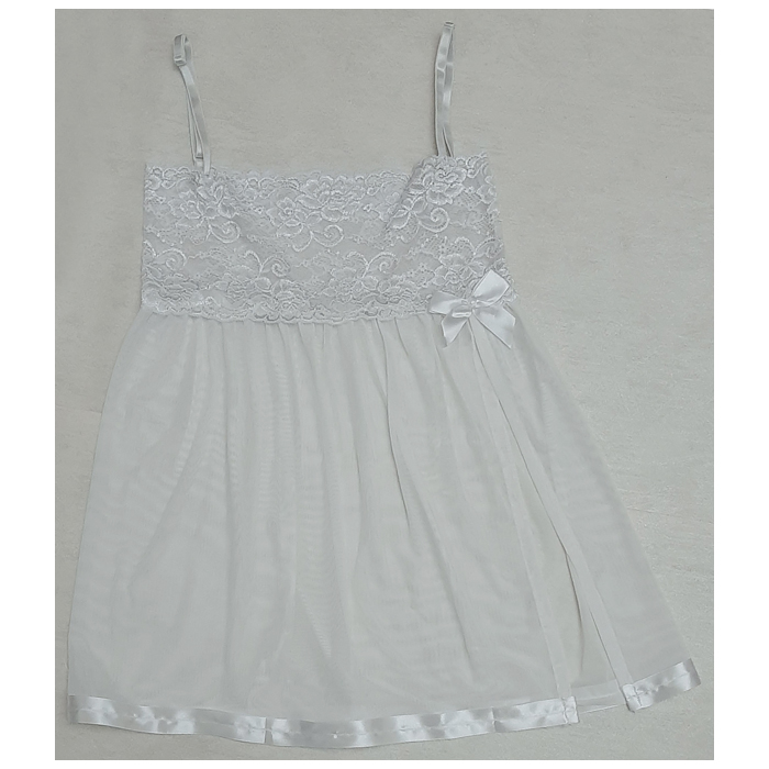 لباس خواب زنانه سفید گیپور و تور با شورت